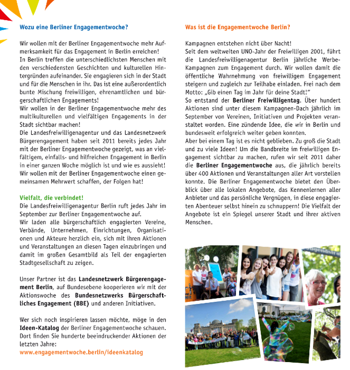 Unser schon vertrauter langer Leporello zur Berliner Engagementwoche (zum Aushängen und vieles mehr) ist gedruckt.